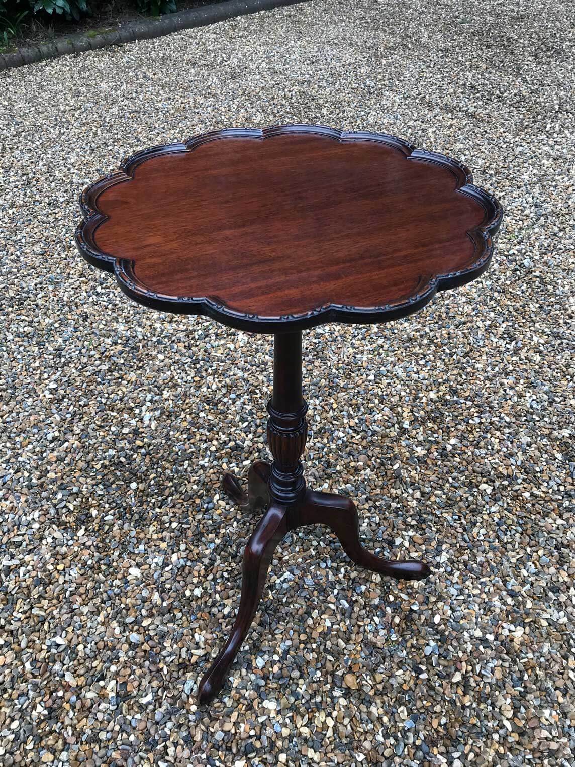 19th Century Mahogany Wine Table, turned column supported with three splayed legs.