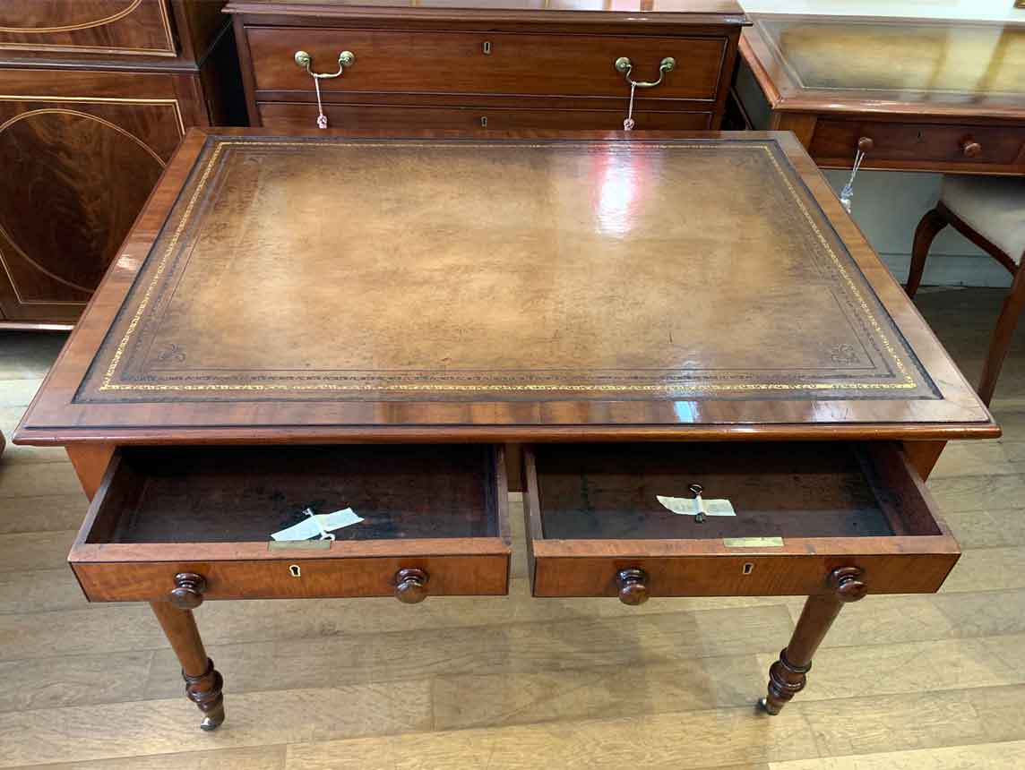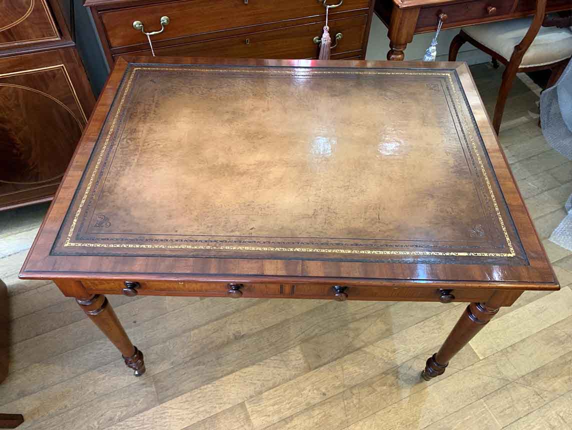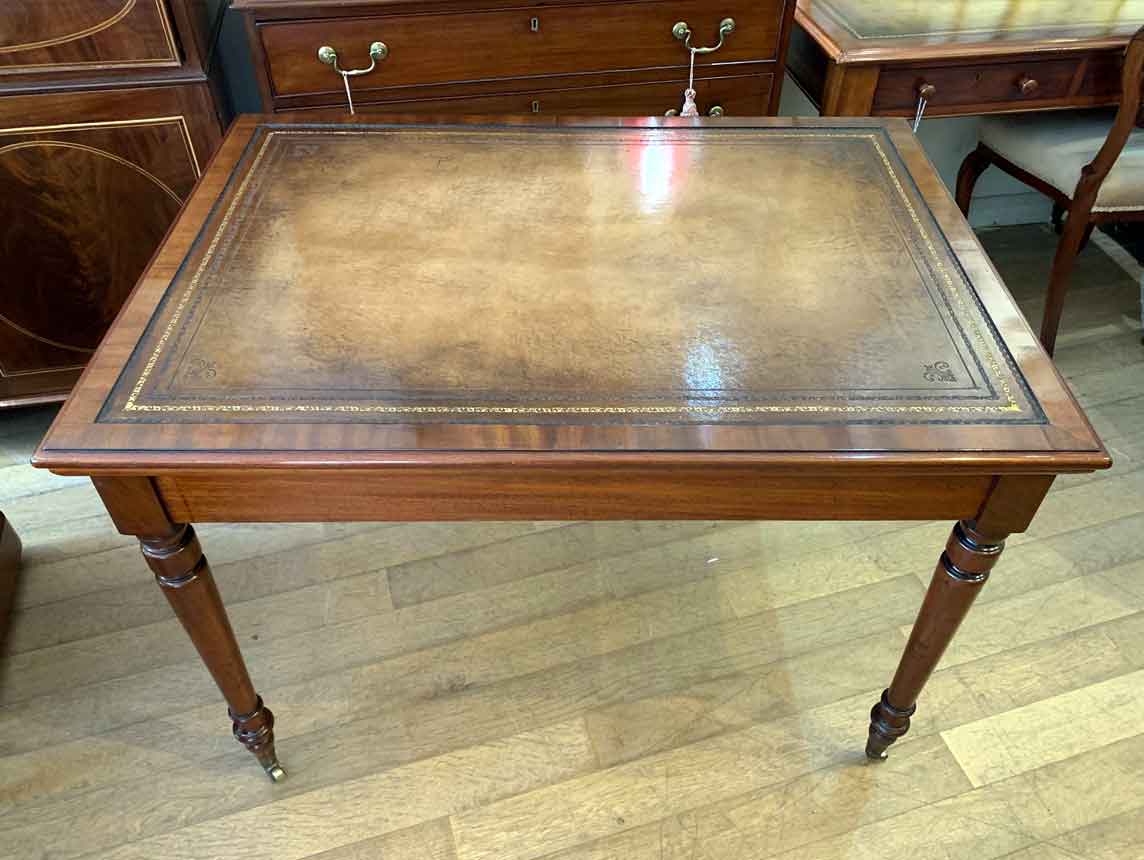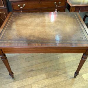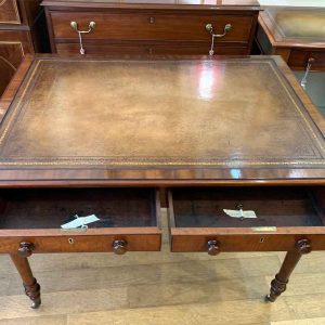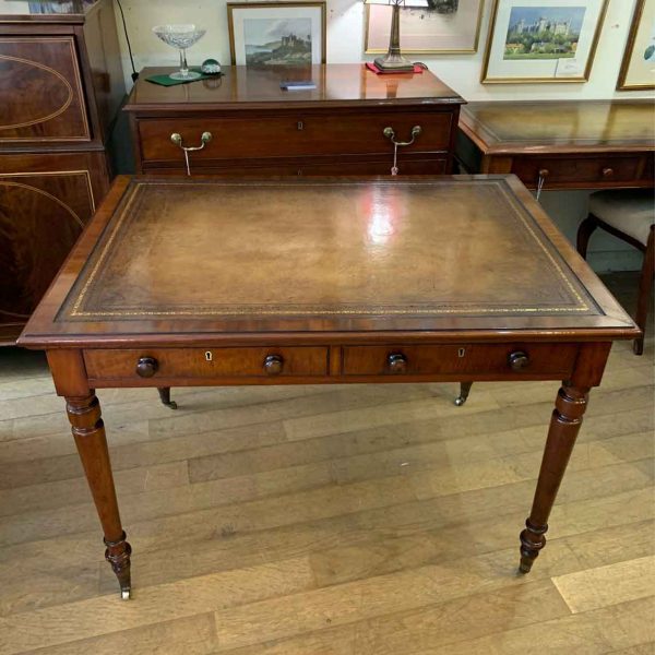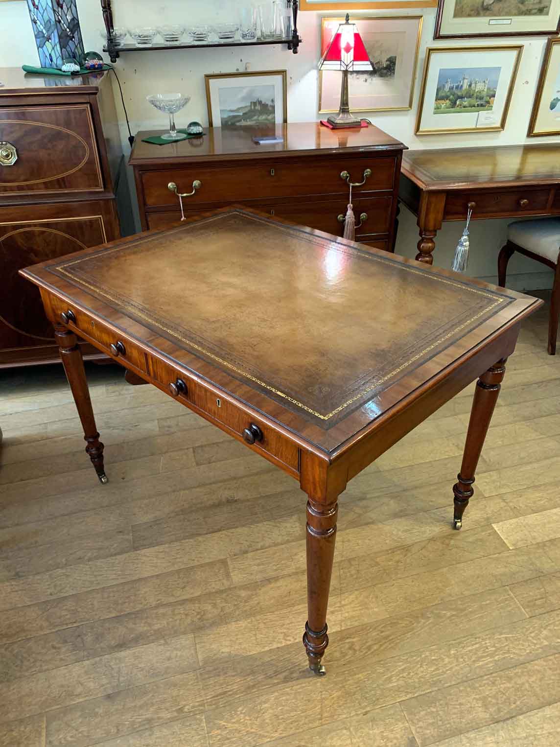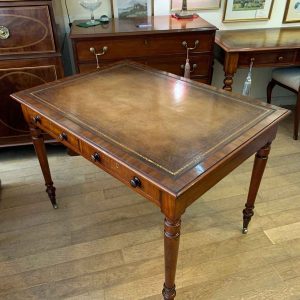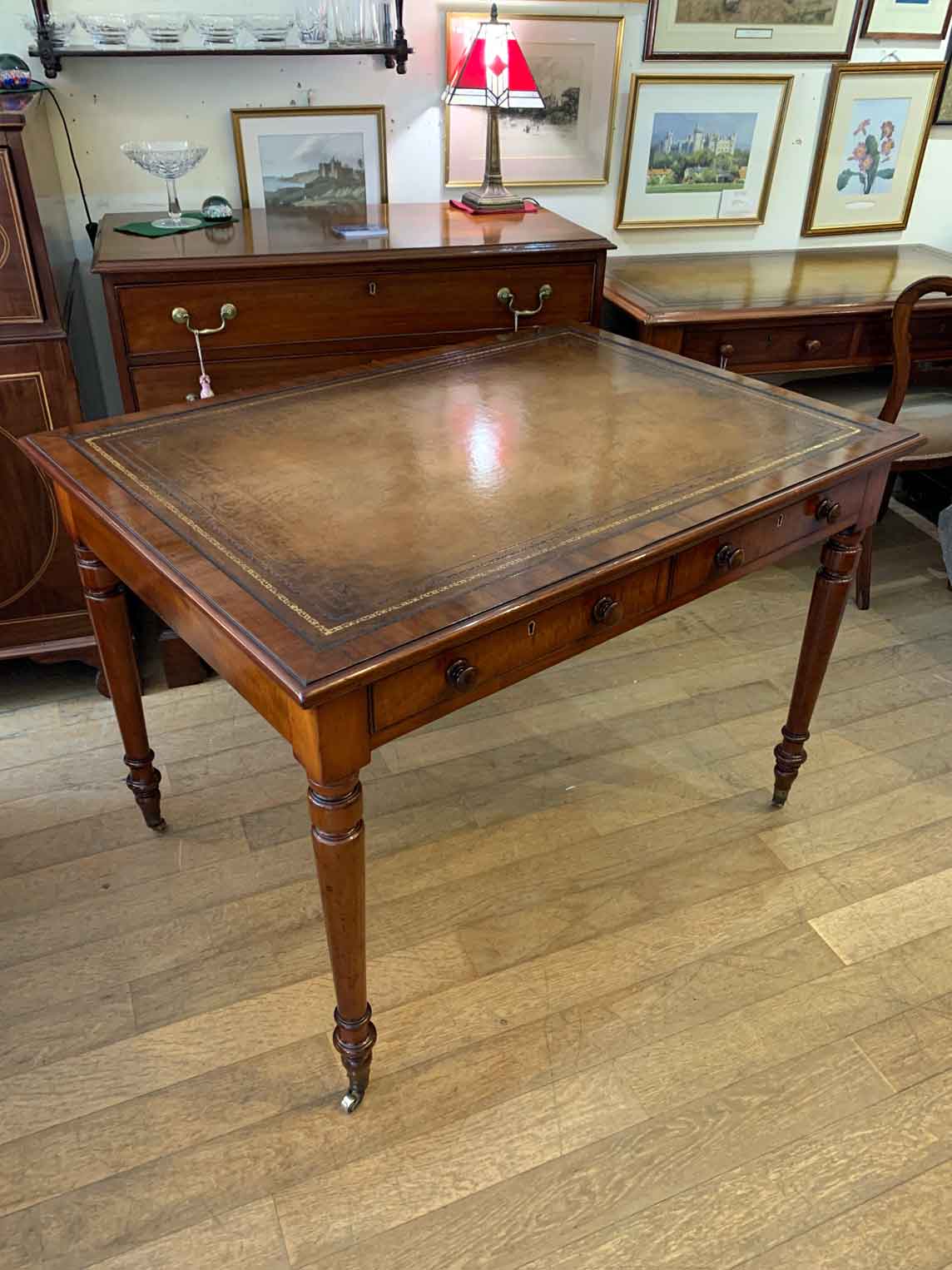 A high quality 19th Century William IV / Victorian Mahogany Writing Table with solid mahogany drawers and working keys. On turned legs, with brass original castors to base.