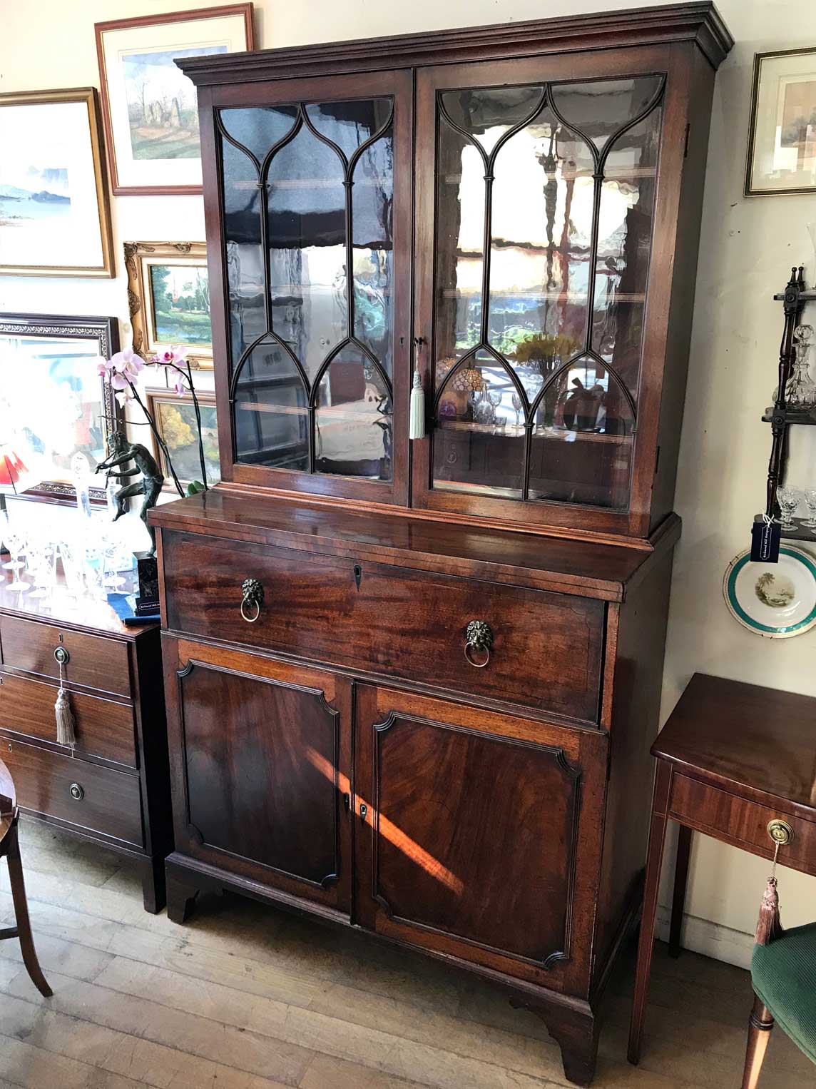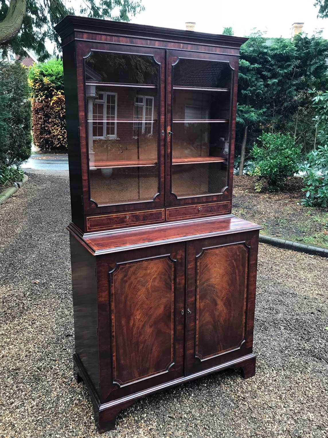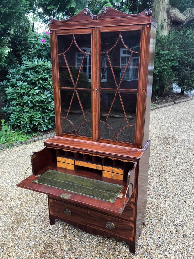 Georgian Mahogany Inlaid Secrétaire Bookcase