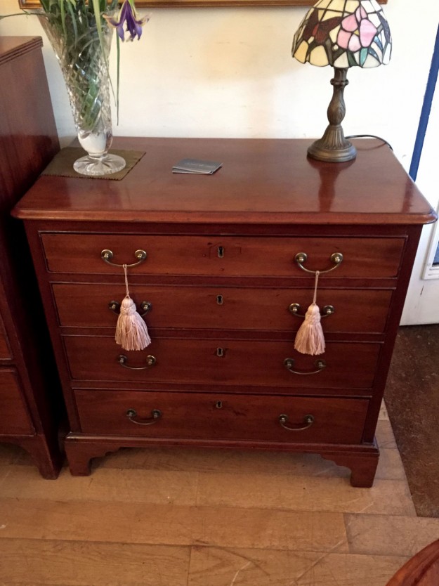 George III – Chest of drawers with four long drawers. Brass handles and Bracket feet. Circa: 1760 – 1820 Dimensions: Width:   inches – cm Height:  inches – cm Depth:   inches – cm Reference: C042T POA