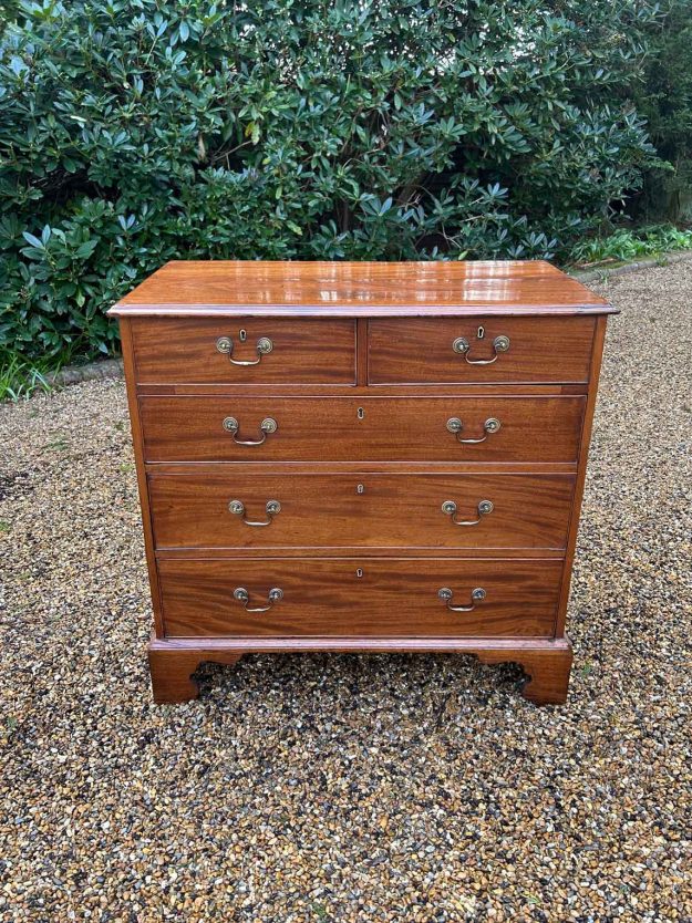 19th Century George III Mahogany Chest Of Drawers with Brushing Slide, three short and three long graduated drawers, original brass swan neck handles, on bracket feet. Circa: 1820 Video: If you require video. Please just let us know by filling out the enquiry form. Dimensions: Height: 31.75 inches – 81 cms Width:  39 inches – 99…