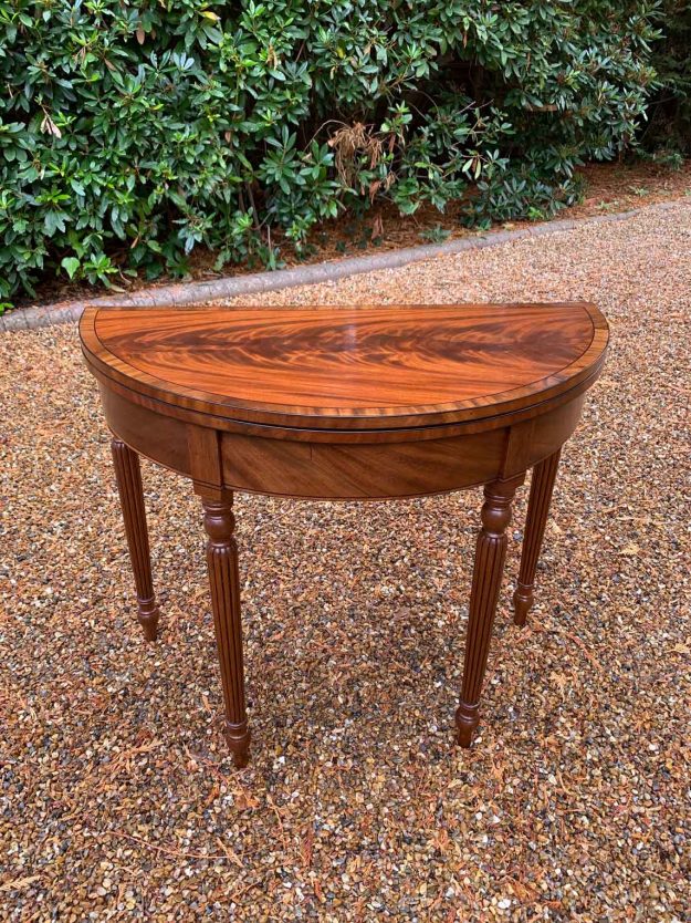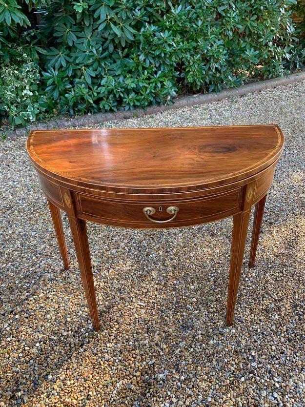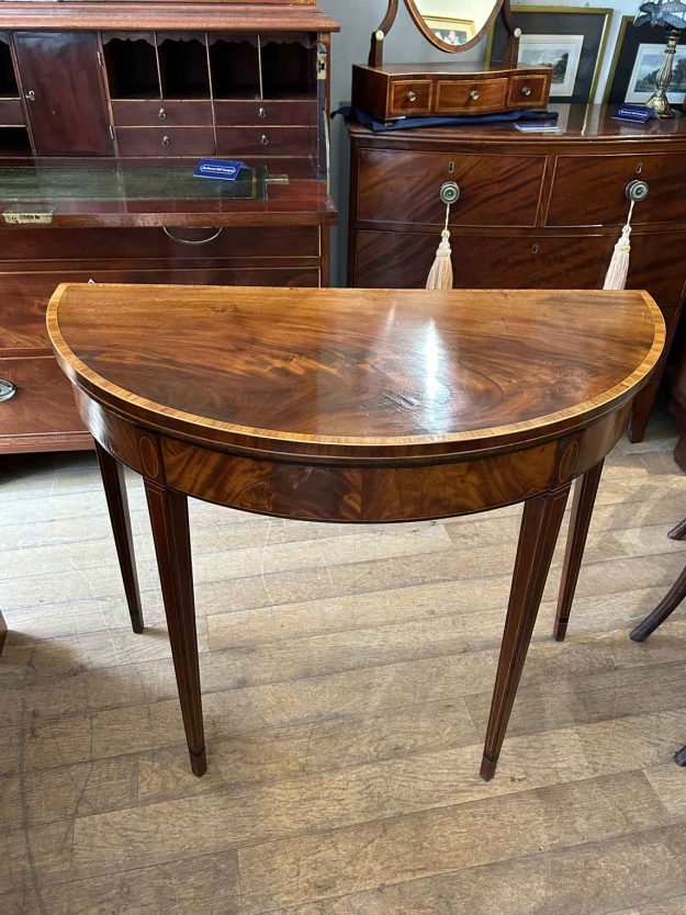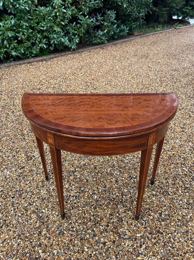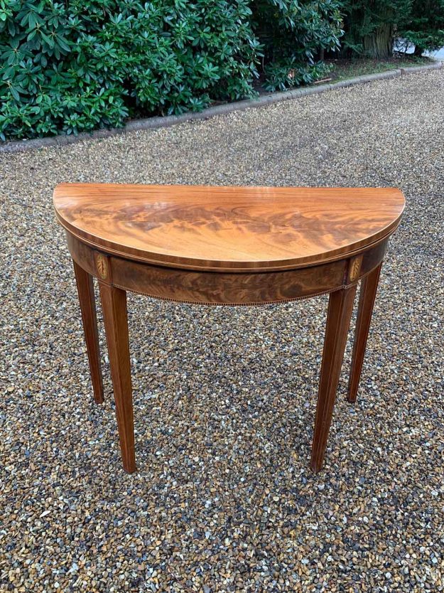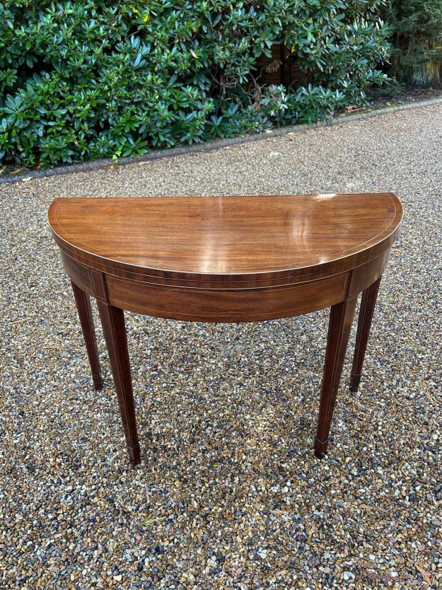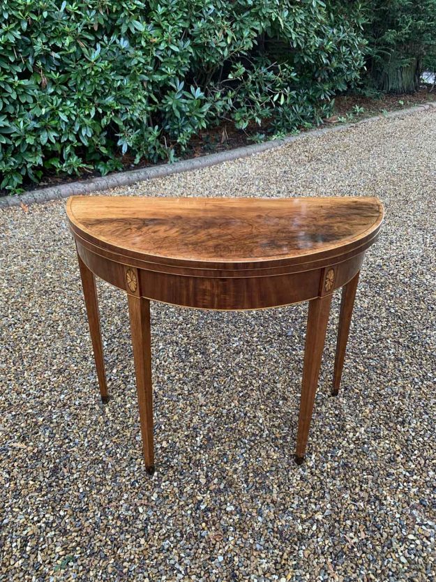 Georgian Mahogany Inlaid Demi Lune Card Table