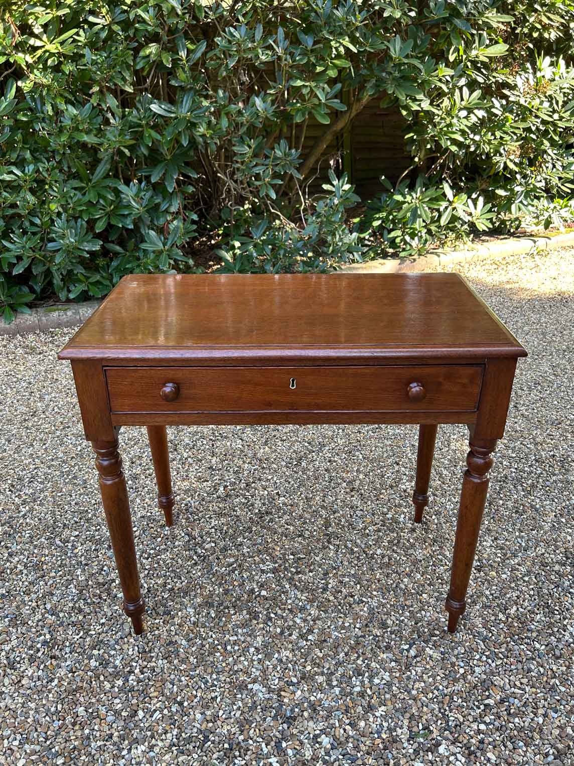A very good quality 19th Century Mahogany Oval Pembroke Table, with inlaid satinwood crossbandings on top, a single mahogany lined drawer with a brass swan neck handle. Standing on elegant square tapered legs supports united by ‘X’ stretcher with brass castors to base. Circa: 1860 Dimensions: Height: 28.25 inches / 72 cms Depth: 18 inches…