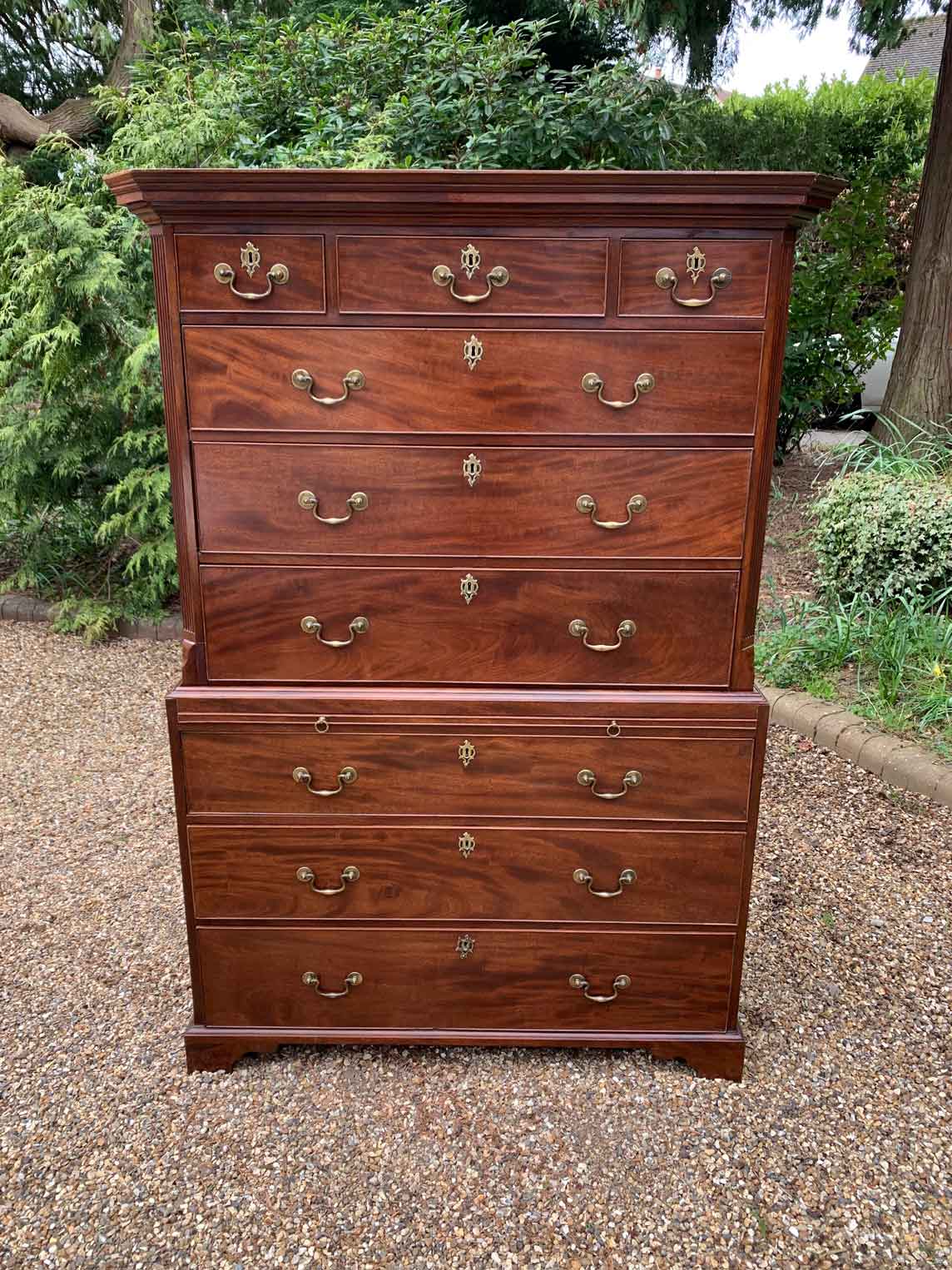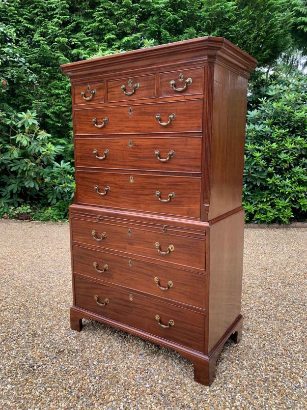 A very high quality 19th Century (George III) Mahogany Chest On Chest / Tallboy. Two short drawers at the top and six long drawers with brass handles and oak lined drawers and reeded sides. Comes apart in two separate sections on bracket feet. Circa: 1820 Video: If you require video. Please just let us know…
